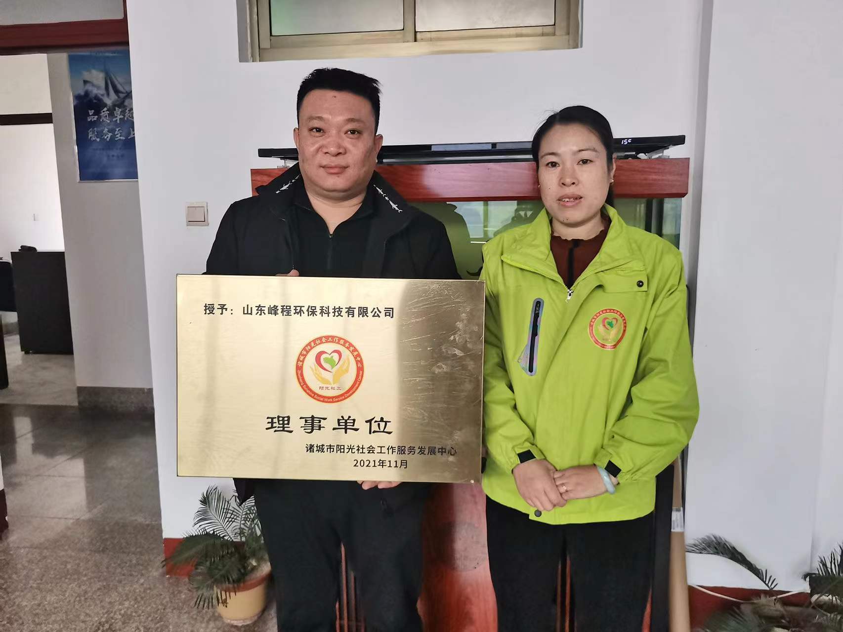 热烈祝贺山东峰程环保科技有限公司,荣获诸城市阳光社会工作服务发展中心“理事单位”称号!